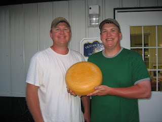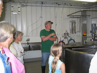 Most of their milk gets sold to Swiss Valley, but approximately 15-20% of their milk gets made into their Gouda Cheese. Here is where Mike took over the tour and took us through the Cheese making house.Mike sure made cheese-making sound like an easy process, but Im sure it is harder than it looks. Quite a large investment in equipment, I think he said $60,000, but the system looks very professional and has a great end-product. They make three different types: Regular, Smoked, and will soon start selling Aged. They have been making cheese now for 13 months, so the Aged is just about ready to be sold now.