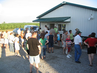 What a field day! A beautiful (yet hot) evening out in the country near Oskaloosa. Mike and Jason Bandstra of Frisian Farms were our hosts for the evening.The field day turned into more of an Open House, but was really interesting. Each brother took a different aspect of their operation to give tours of. Each went through probably four or five tour groups. There were quite a few people there. My final head count was 93 people!