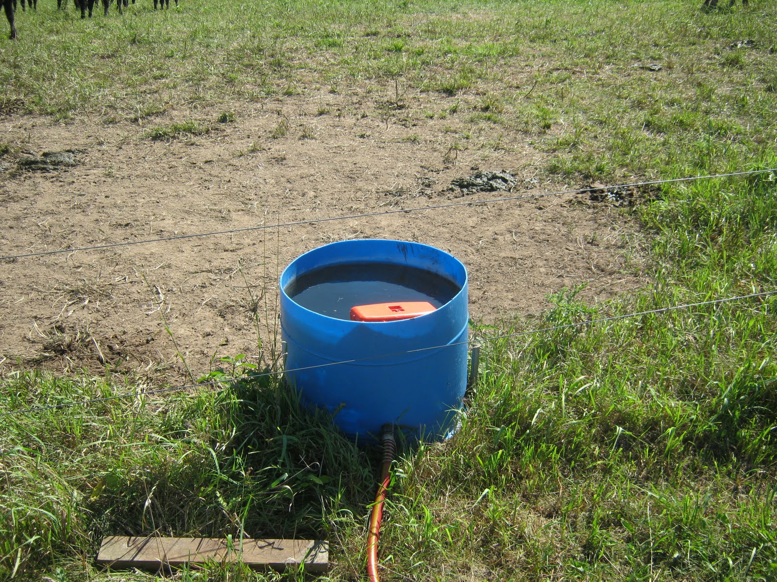 The water lines are all gravity fed from this 5,000-gallon water tank he keeps at the highest point on his farm. He pumps water into the tank from his pond whenever the water gets below a certain level. Notice that he painted the water tank grey, which helps keep algae from growing on the inside of it. He also adds a small amount of chlorine each time he fills the tank. Terry says this may not be necessary, and may be killing off some of his beneficial organisms that would help with his overall ecosystem functioning. Terry suggested that apple cider vinegar may be just as effective, and also help with the health of his cows. He mentioned organic iodine as another potentially good substance to add to cattle’s drinking water periodically to help boost health.
