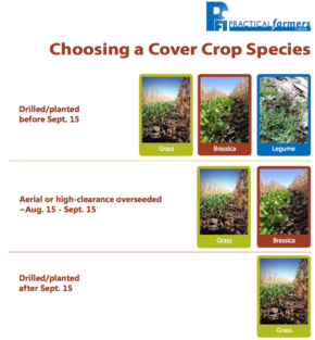 Take some hints from cover cropper Nathan Anderson who farms near Cherokee. In Nathan’s part of the state, sufficient rainfall is critical to aerial seeding cover crops. “What we don’t want is overseeding cover crops into a thick, dark corn canopy. We need more sunlight on the canopy floor followed by a good rain to achieve successful cover crop establishment. Don’t get started too soon.”