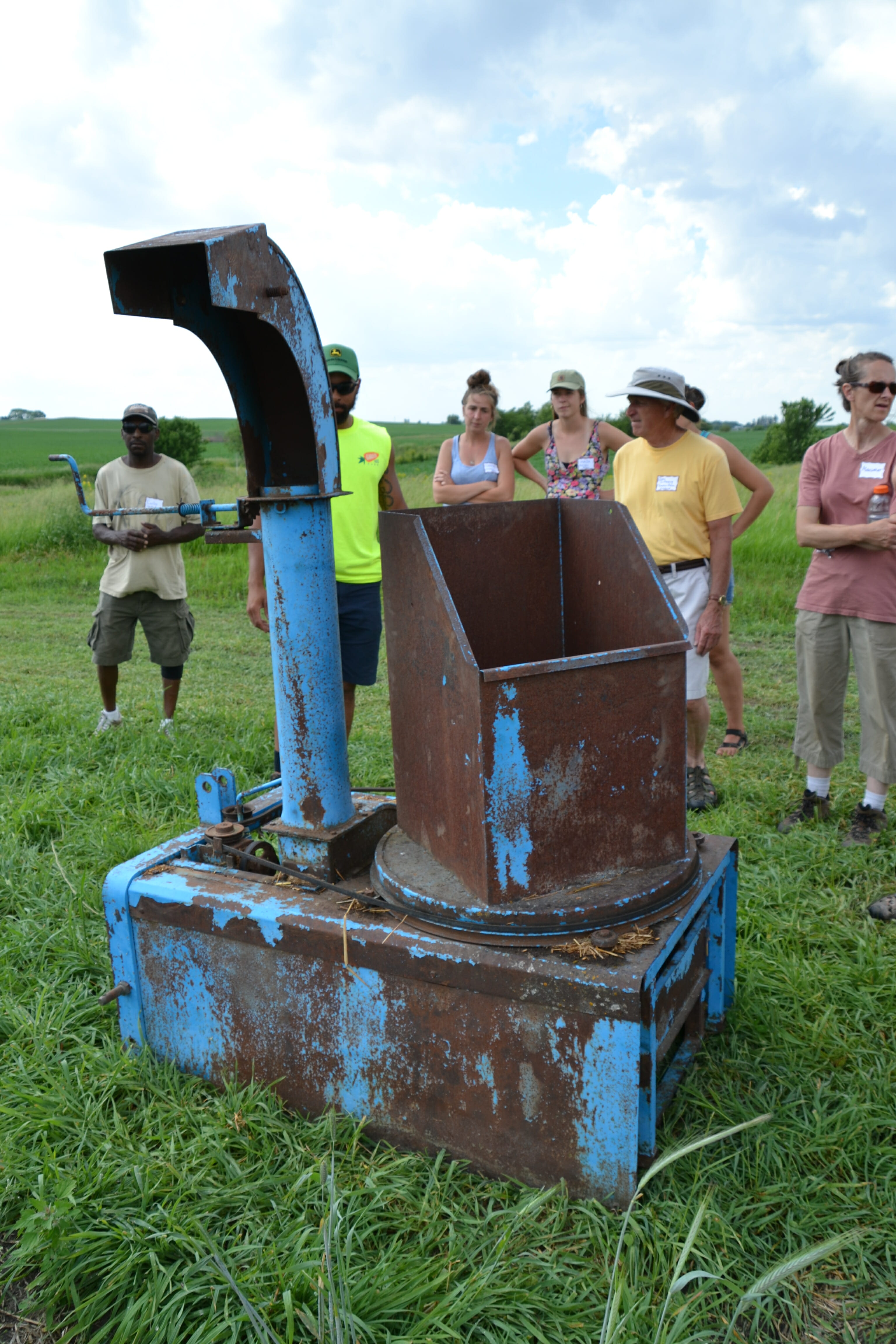Indeed, this was T.D. Holub’s first field day with PFI, which he hosted with his fiance, Sarah Gericke, near Coggon at their Garden Oasis Farm. The topic of the field day was “Tools and Tractors” and attendees tried out several of each, including his Allis Chalmers G, RainFlo water wheel, several seeders, wheel hoes, hand tools, and shop equipment – including a batch egg washer he built. Garden Oasis Farm maintains a 100-member CSA , 4-5 wholesale accounts, and does markets in Cedar Rapids, Iowa City, and Independence. In addition to vegetables, T.D. and Sarah raise eggs and meat chickens, and have a few goats.