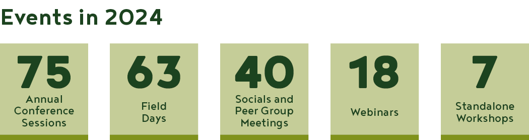 In 2024, PFI’s farmer-led education department stewarded farmer-led education and network-building through 247 events. PFI also had a presence at 92 partner events, from speaking to tabling to helping arrange for farmer speakers. Here are some highlights.