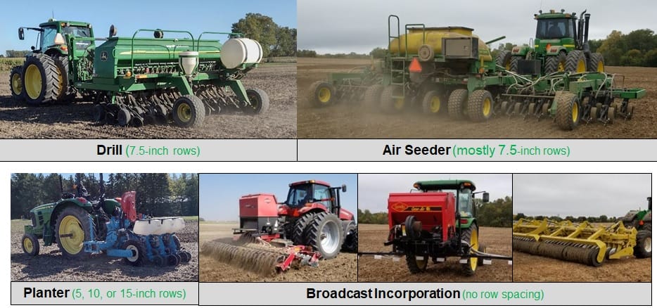 Air Seeder | 7.5-inch (mostly) | 1 inch to 2 inches deep | 0.5 inch (variable) | 1.2-1.4 million seeds/acre |