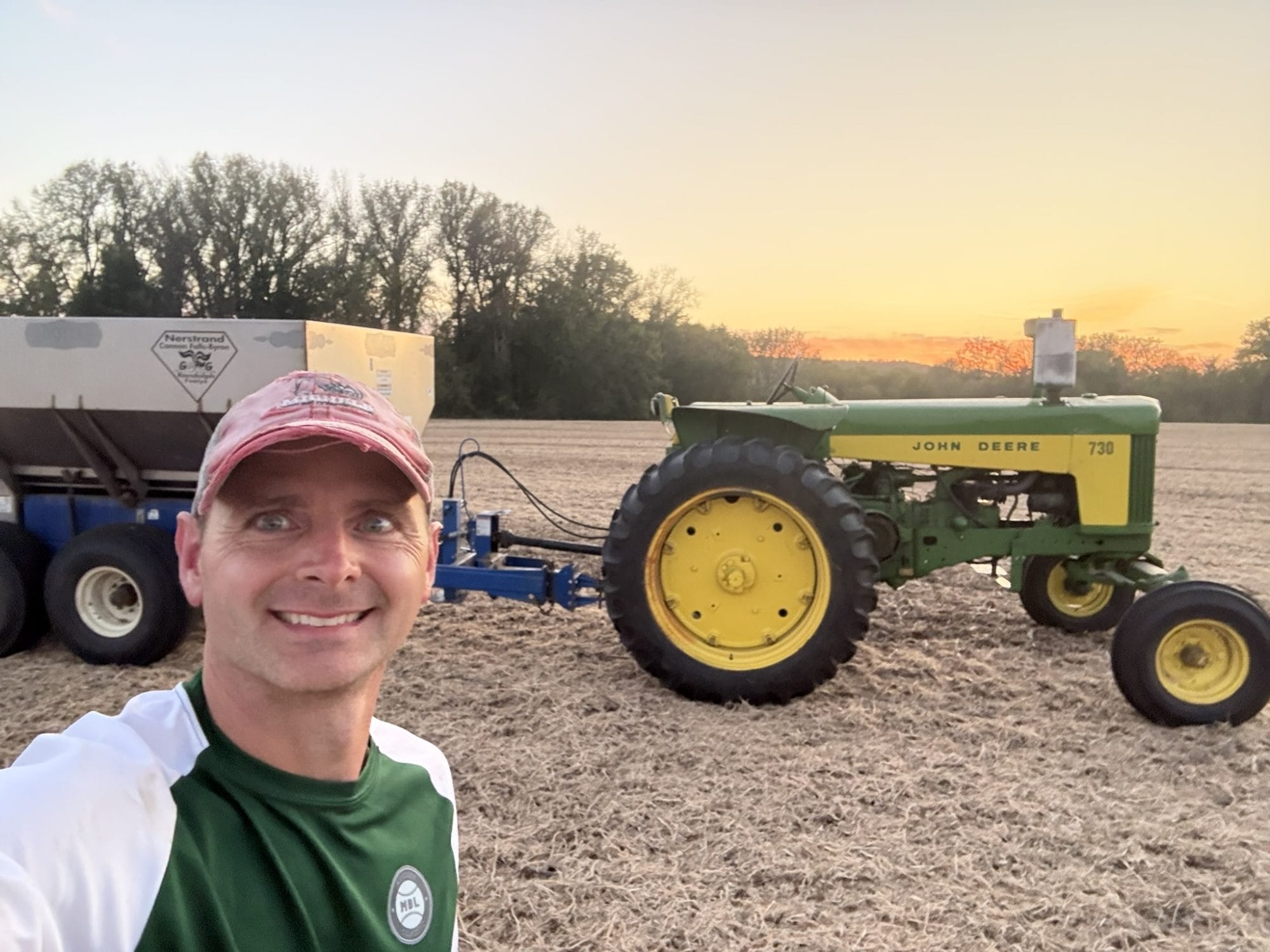 Steve Nelson of Cannon Falls, Minnesota, plants cover crops to improve soil health. This fall he planted 90-acres of rye using a broadcast seeder. He has used a no-till drill in the past but plans to keep broadcasting seed in the future because it has a lower cost and he has good results. He planted his cover crops on Sept. 29.