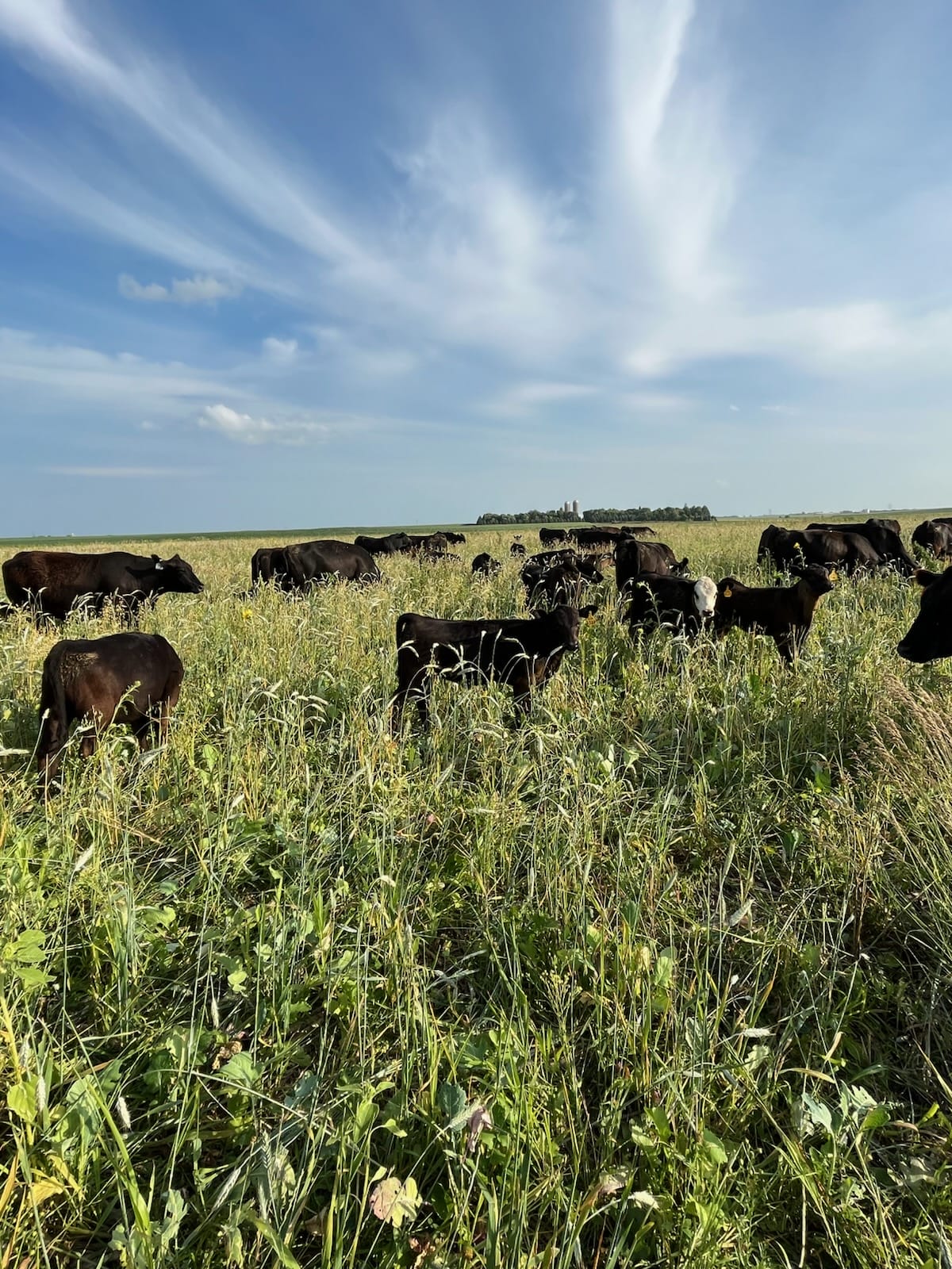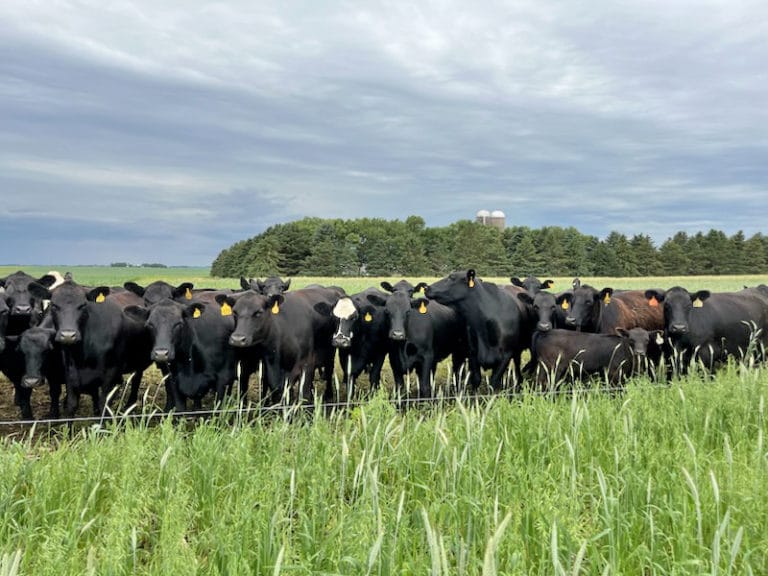 Just an hour’s drive away, near Adrian, Minnesota, Mark and Dawn Madison graze their own cover crop acres as third-generation farmers on Mark’s family farm. For 30 years, the farm was a conventional dairy that continually grazed its pastures. Mark and his father started incorporating cover crops in 2012 and began dabbling in no-till and strip-till a few years later. Then in 2019, Mark and Dawn chose to end their dairy operation and switch to raising Angus beef cattle.