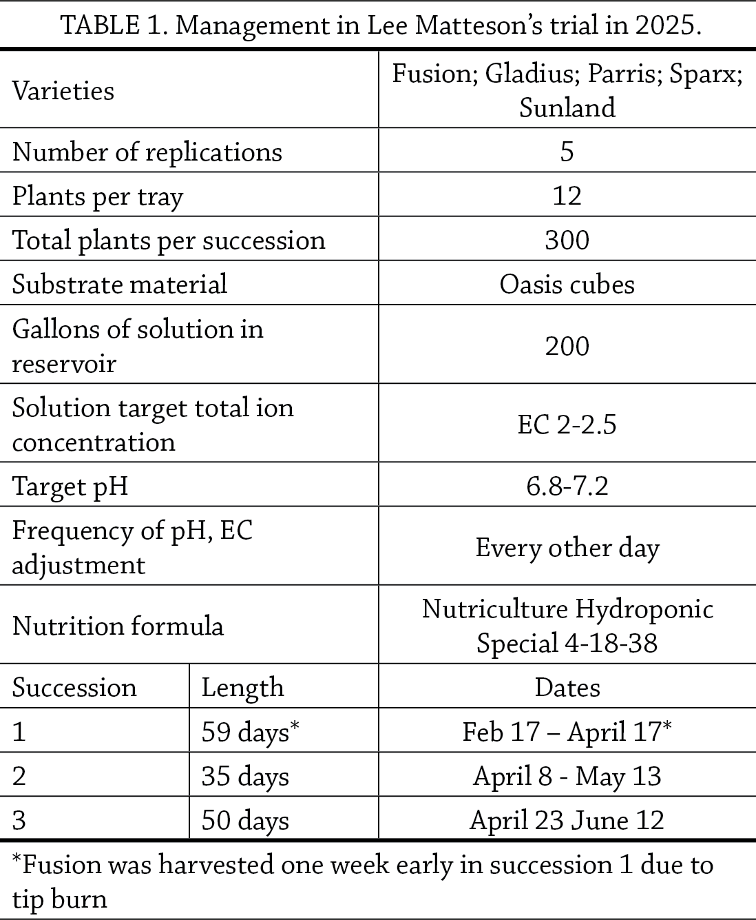 - Lee Matteson tested five varieties of romaine lettuce in a hydroponic setup.