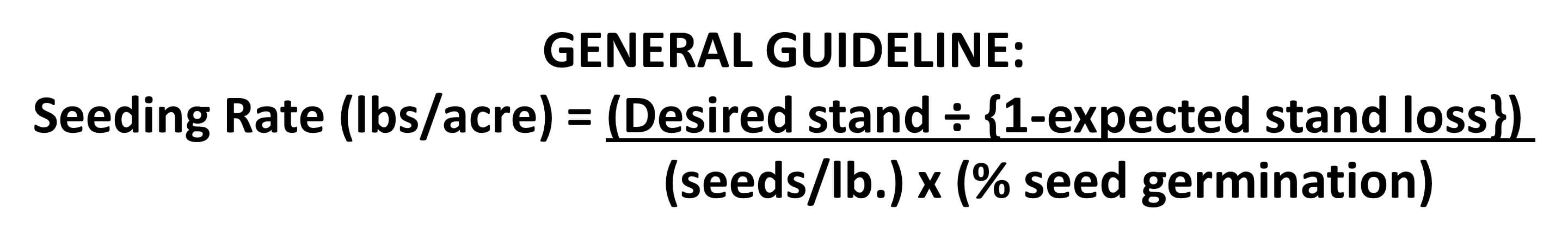 With corn and soybean production, it's common to think about both desired plant population and seeding rate in terms of seeds and plants per acre (or square foot). But with seeding small grains or cover crops, we talk about bushels or lbs per acre. Agronomy graduate student David Weisberger presented at the small grains short course about his research interviewing various producers from around the state. He found that seeding rates varied from 1.75-5 bu/acre among oat producers across the state. He wanted to see if there was an optimal economical seeding rate, and he conducted research on the farms of Aaron Lehman and Doug Alert, both PFI members. He looked at three populations: 22 plants/sq ft, 29 plants/sq ft, and 36 plants/sq ft. Using the following formula (To calculate lbs/acre from desired plant population, the Alberta Ministry for Agriculture and Forestry has a useful calculator), he determined seeding rates: