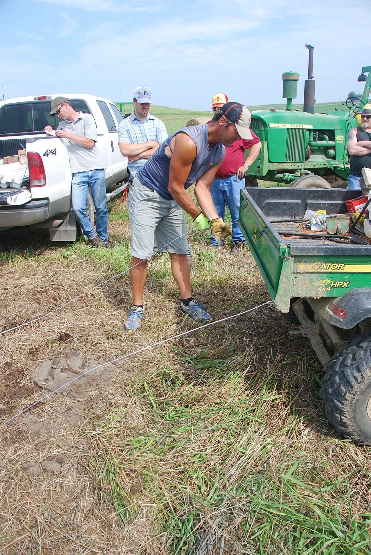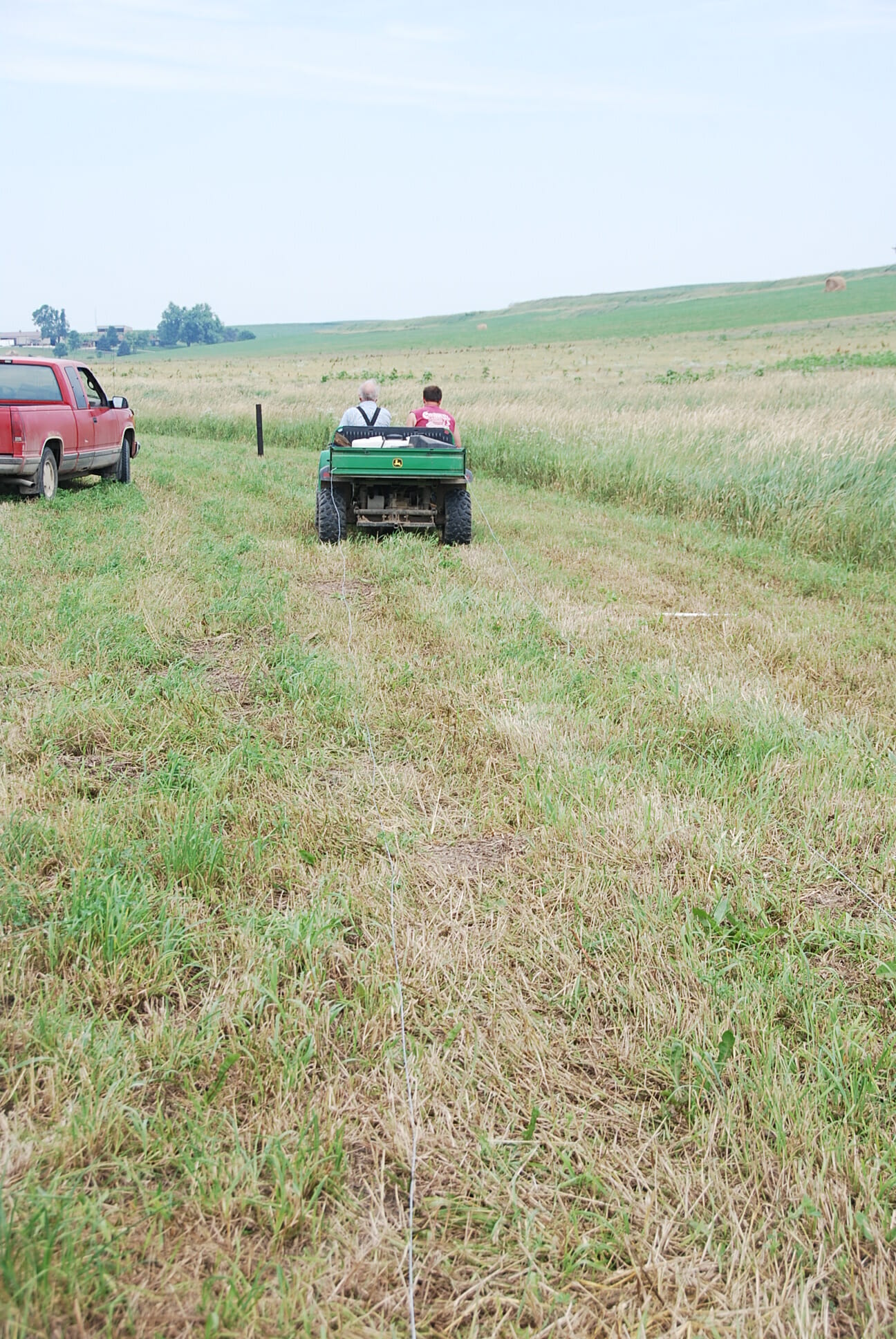 We attached the two wires to the back of an ATV to pull the wire out.